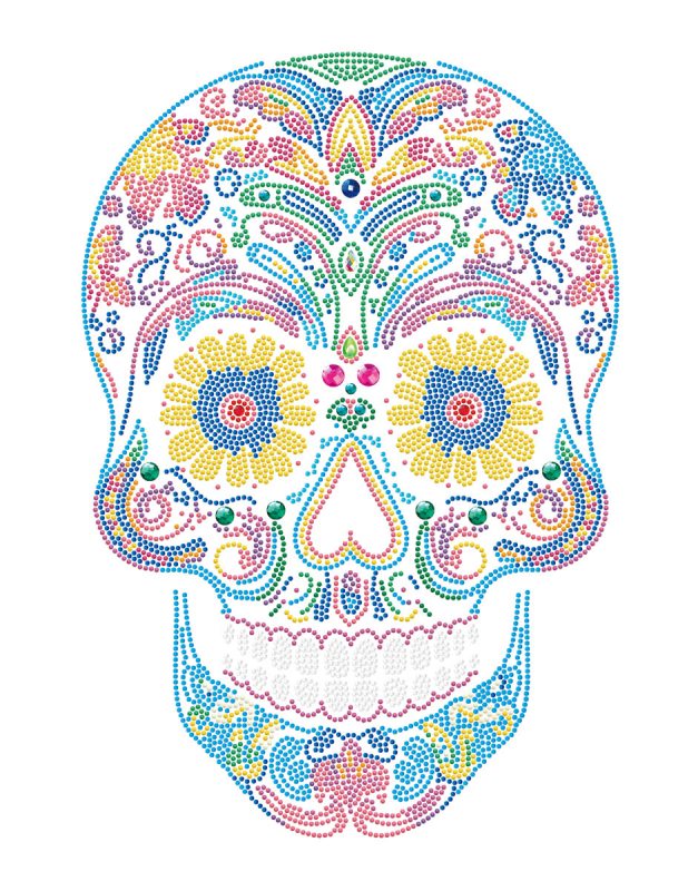 Impression sur un fond noir façon suédine, tout doux au toucher, faisant ressortir encore plus l’éclat des couleurs et la brillance des diamants 13 facettes.