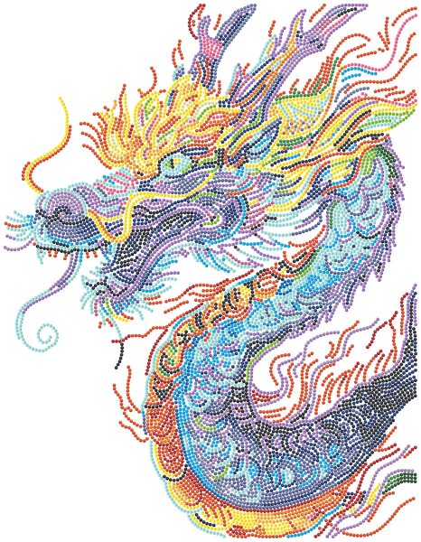 Accueil Nos kits Nos Kits Diamants Ronds Kit Diamond Dotz® Intermédiaires Kit Diamond Dotz fond noir suédine – Dragon fluorescent